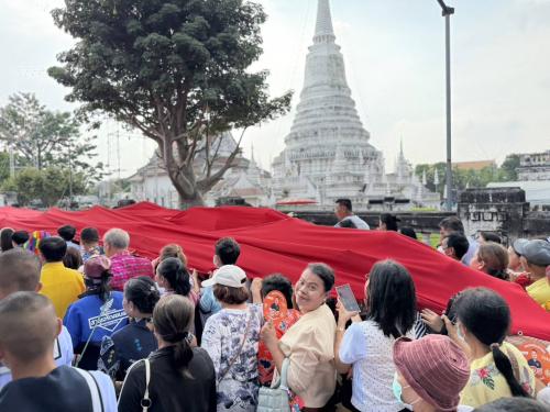 นายสยาม ศิริมงคล ผู้ว่าราชการจังหวัดสมุทรปราการ พร้อมด้วย นางอรจิรา ศิริมงคล นายกเหล่ากาชาดจังหวัดสมุทรปราการ เป็นประธานอัญเชิญผ้าแดงห่มองค์พระสมุทรเจดีย์ ทำพิธีทักษิณาวรรต รอบองค์พระสมุทรเจดีย์ 3 รอบ เพื่อสักการะพระบรมสารีริกธาตุ 12 องค์ ขององค์สมเด็จพระสัมมาสัมพุทธเจ้า ซึ่งบรรจุอยู่ภายในองค์พระสมุทรเจดีย์ ก่อนที่จะส่งมอบให้กับผู้ประกอบพิธีห่มผ้าองค์พระสมุทรเจดีย์ ซึ่งเป็นสมาชิกในตระกูลรุ่งแจ้ง นำขึ้นไปห่มบนคอระฆังขององค์พระสมุทรเจดีย์ โดยมีหัวหน้าส่วนราชการ ทั้งภาครัฐ ภาคเอกชนและประชาชน ร่วมกันประกอบพิธีห่มผ้าองค์พระสมุทรเจดีย์ สำหรับพิธีดังกล่าวจะจัดขึ้นเป็นประจำทุกปี ในวันแรม 5 ค่ำ เดือน 11 ซึ่งปีนี้ตรงกับวันที่ 12 ตุลาคม 2568 ณ องค์พระสมุทรเจดีย์ ตำบลปากคลองบางปลากด อำเภอพระสมุทรเจดีย์ จังหวัดสมุทรปราการ
