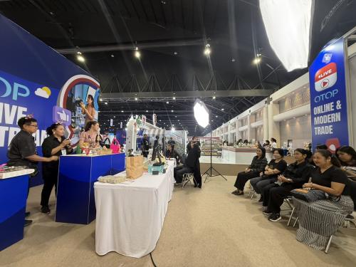 ของขวัญจากฟ้า สวมคุณค่าสู่ปวงชน" ณ จุด Live Streaming ผู้ประกอบการ OTOP ได้ฝึกปฏิบัติจริง ทั้งเทคนิคการไลฟ์สดให้ปัง การนำเสนอสินค้าให้น่าสนใจ การสื่อสารกับลูกค้าอย่างตรงใจ พร้อมเคล็ดลับการสร้างยอดขายและขยายฐานลูกค้าในโลกออนไลน์