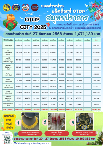 āļŠāļģāļŦāļĢāļąāļāļāļēāļ OTOP City 2025 āļ§āļąāļāļāļĩāđ 27 āļāļąāļāļ§āļēāļāļĄ 2568 āļāļąāļāļŦāļ§āļąāļāļŠāļĄāļļāļāļĢāļāļĢāļēāļāļēāļĢ āļĄāļĩāļĒāļāļāļāļģāļŦāļāđāļēāļĒ āļĢāļ§āļĄ 1,471,139 āļāļēāļ āđāļāļĒāļāļģāđāļāļāđāļāđ āļāļąāļāļāļĩāđ