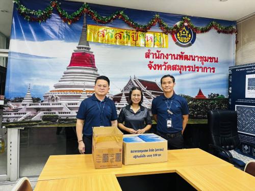 วันที่ 25 กุมภาพันธ์ 2569 นางพัชรินทร์ โสระพันธ์ ผู้อำนวยการกลุ่มงานยุทธศาสตร์การพัฒนาชุมชน รักษาราชการแทน พัฒนาการจังหวัดสมุทรปราการ มอบหมายให้นางสาววรญา ไกรพันธ์ นักวิชาการพัฒนาชุมชนชำนาญการพิเศษ ร่วมรับมอบปฏิทินตั้งโต๊ะเก่าจาก ธนาคารกรุงเทพ จำกัด (มหาชน) สาขาสายลวด สมุทรปราการ เพื่อนำไปมอบให้แก่ศูนย์เทคโนโลยีการศึกษาเพื่อคนตาบอด มูลนิธิช่วยคนตาบอดแห่งประเทศไทย ในพระบรมราชินูปถัมภ์ สำหรับจัดทำสื่อการเรียนการสอนเพิ่มโอกาสเข้าถึงการศึกษา เสริมทักษะและพัฒนาศักยภาพการศึกษาเรียนรู้ให้แก่ผู้พิการทางสายตา