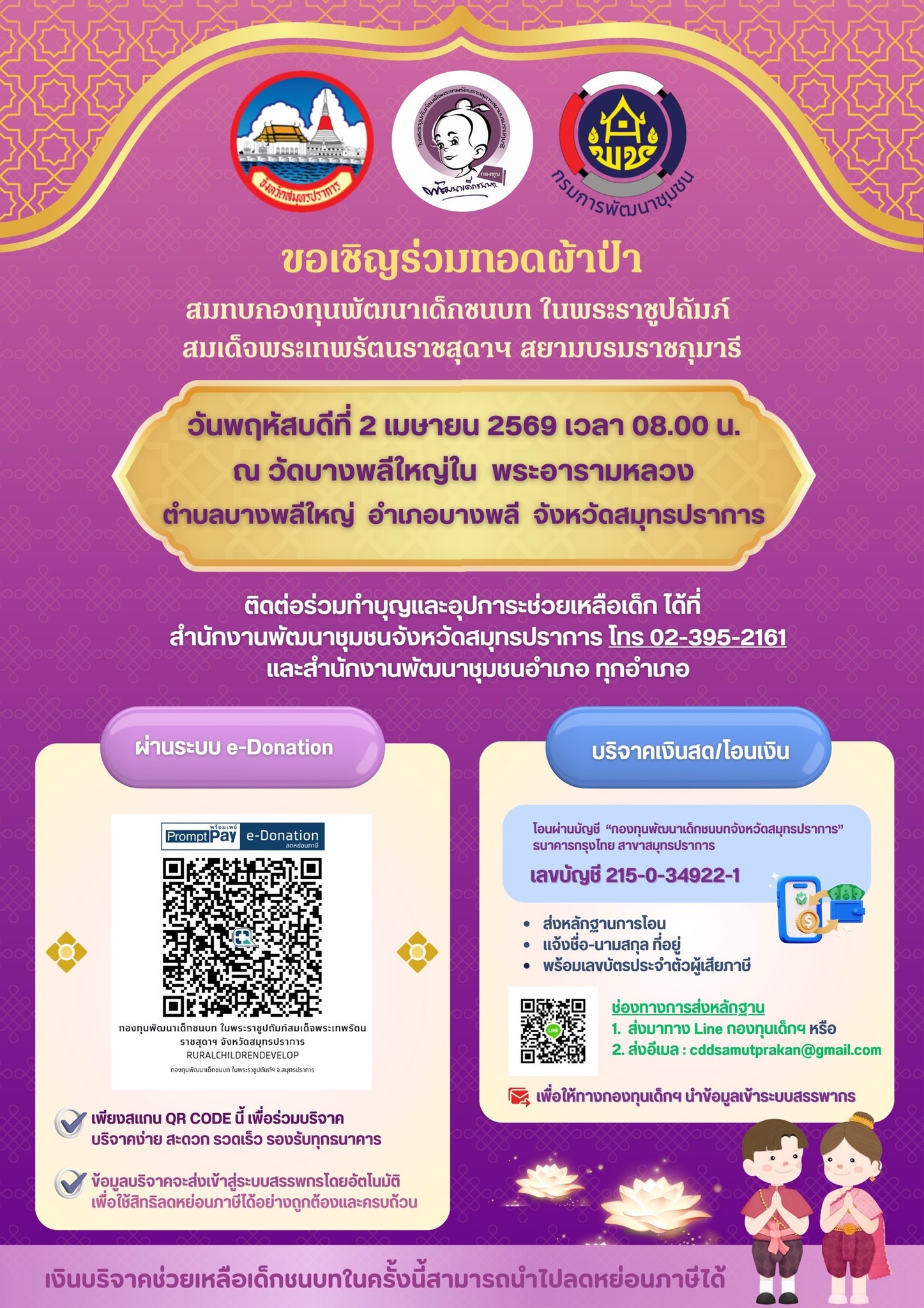 โทรศัพท์ 0-2395-2161 โทรสาร 0-2395-4968 อีเมล : cddsamutprakan@gmail.com